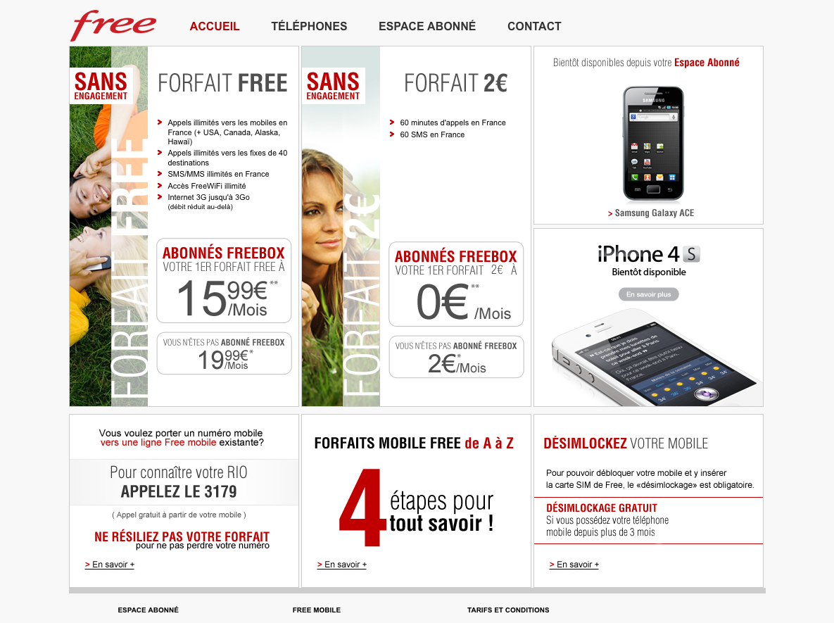 Nous voulions acheter l’iPhone 4S 16Go qui est au prix de 629€ chez Apple. Chez Free, des tarifs ont été annoncé. Pour ce même iPhone, chez Free Mobile, nous paierions 1€ à la commande puis pendant 24 mois, 29,99€. Soit un total de 720,76€ à la fin…
