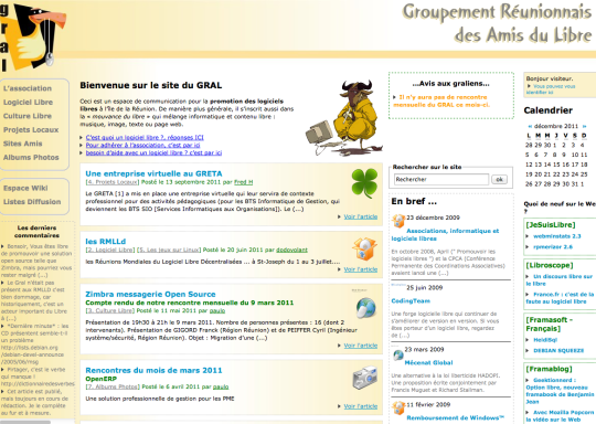 Groupement Réunionnais des Amis du Libre. Promotion des logiciels libres , de GNU/Linux et de la culture libre à la Réunion. Ubuntu, Firefox, (...)SPIP 2.1