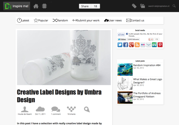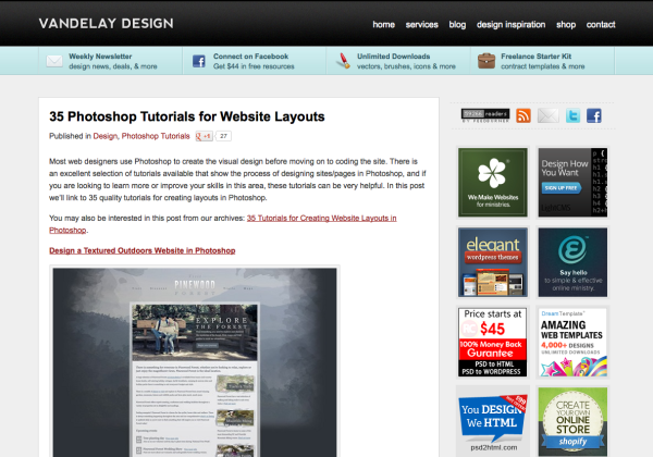 Les ressources du lundi #3 35 Photoshop Tutorials for Website Layouts 35 Photoshop Tutorials for Website Layouts 8 Steps to improve User Experience Of Your Website 8 Steps to improve User Experience Of Your Website Is Responsive Web Design the Right Path to Minimalism ? Is Responsive Web Design the Right Path to Minimalism ? The 99 Best Logo Designs for Inspiration The 99 Best Logo Designs for Inspiration 10 Videos Showing How To Draw People 10 Videos Showing How To Draw People Creative Label Designs by Umbra Design Creative Label Designs by Umbra Design How to Build a Sliding One Page Portfolio with jQuery How to Build a Sliding One Page Portfolio with jQuery A collection of cool and creative ads A collection of cool and creative ads 10 Excellent Photo Correction and Enhancement Photoshop Tutorials 10 Excellent Photo Correction and Enhancement Photoshop Tutorials lundi 7 mai 2012 par Teddy Payet