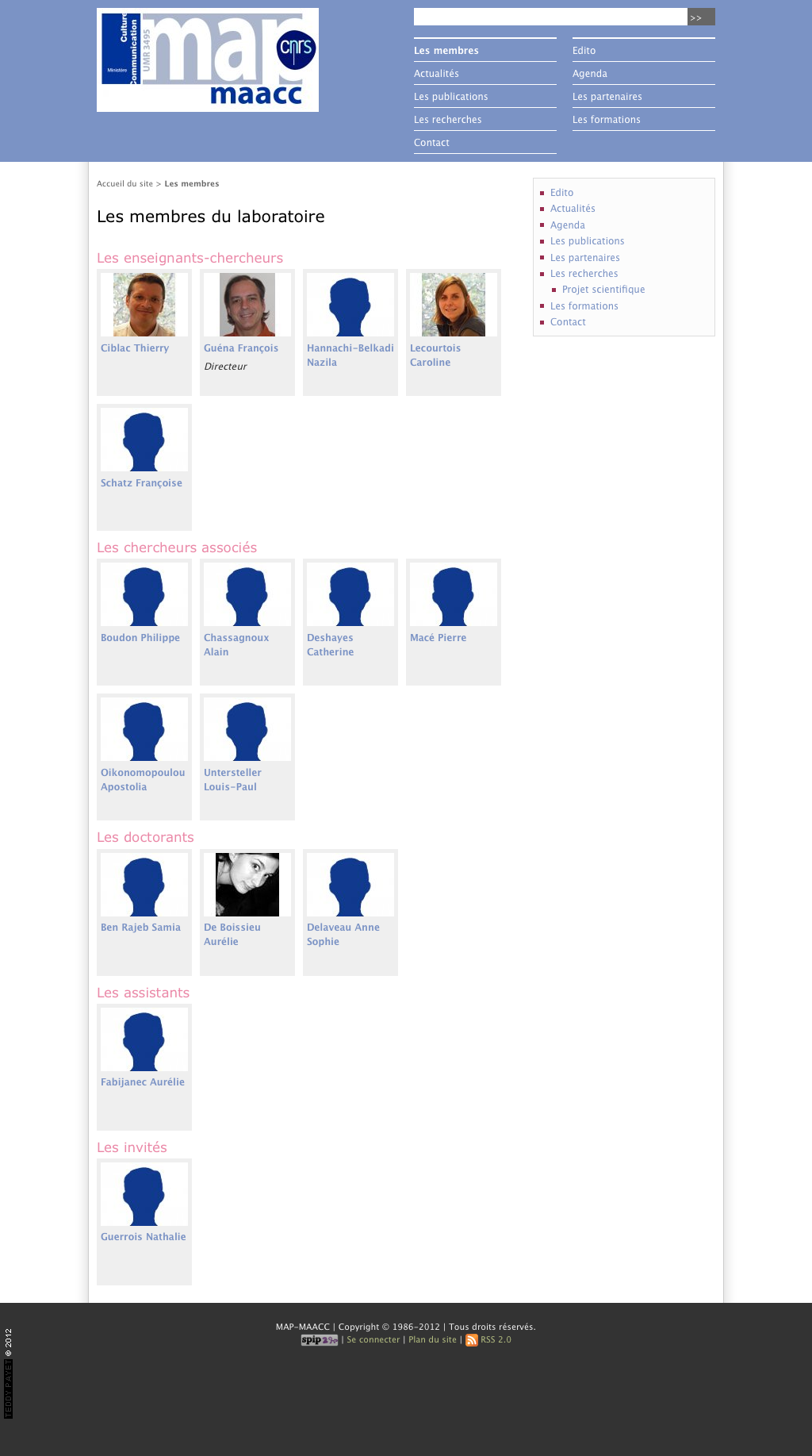 Le site a été porté sous SPIP 2.1.12 pour permettre une recherche transversale des différents laboratoires de l’école. La mise en page du site sert de gabarit pour tous les autres laboratoires. Les couleurs changeront selon le laboratoire mais les fonctions restent les même.