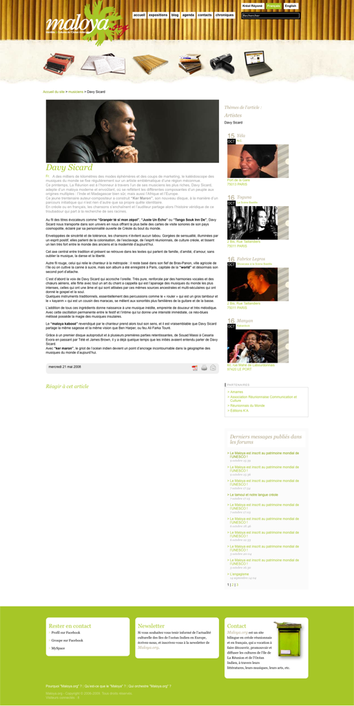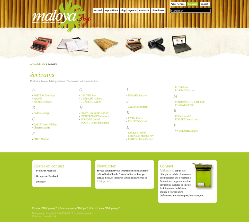 Maloya.org est un site mettant en avant la culture et l’identité réunionnaise et de l’Océan Indien à travers la littérature, la musique, les événements, etc.