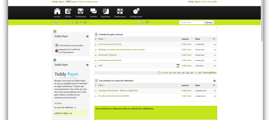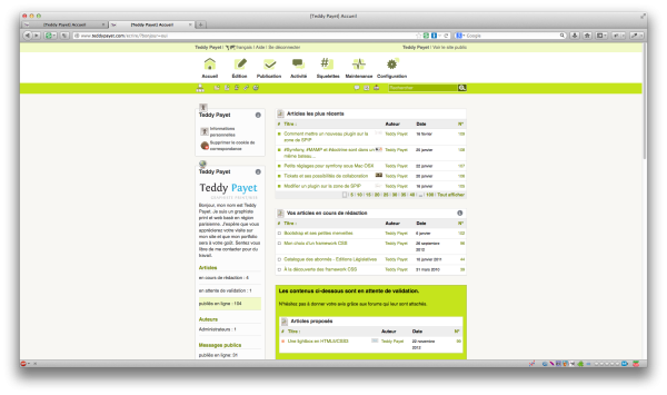 Le temps que je me familiarise avec ce Framework CSS (et javascript) avec différents projets, l’envie m’est venue de refaire l’espace privé de SPIP grâce à Bootstrap…