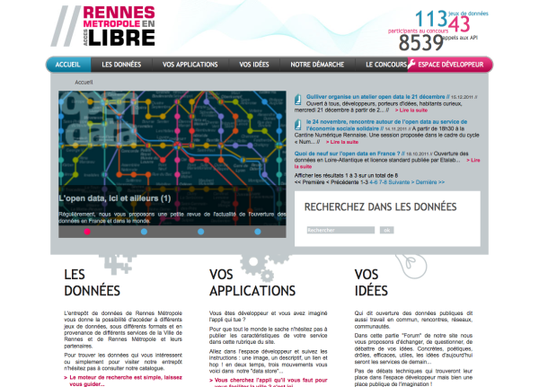 Depuis le mois de novembre, je m’intéresse à la vague de l’Open Data en France. L’Open Data (une donnée ouverte), selon Wikipedia, est une information publique brute, qui a vocation à être librement accessible. La philosophie pratique de l’open data préconise une libre disponibilité pour tous et chacun, sans restriction de copyright, brevets ou d’autres mécanismes de contrôle.