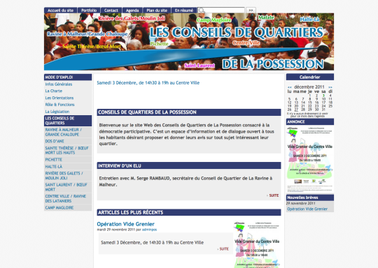 Bienvenue sur le site Web des Conseils de Quartiers de La Possession consacré la démocratie participative. C’est un espace d’information et de dialogue ouvert tous les habitants désirant proposer et donner leurs avis sur tout sujet intéressant (…)