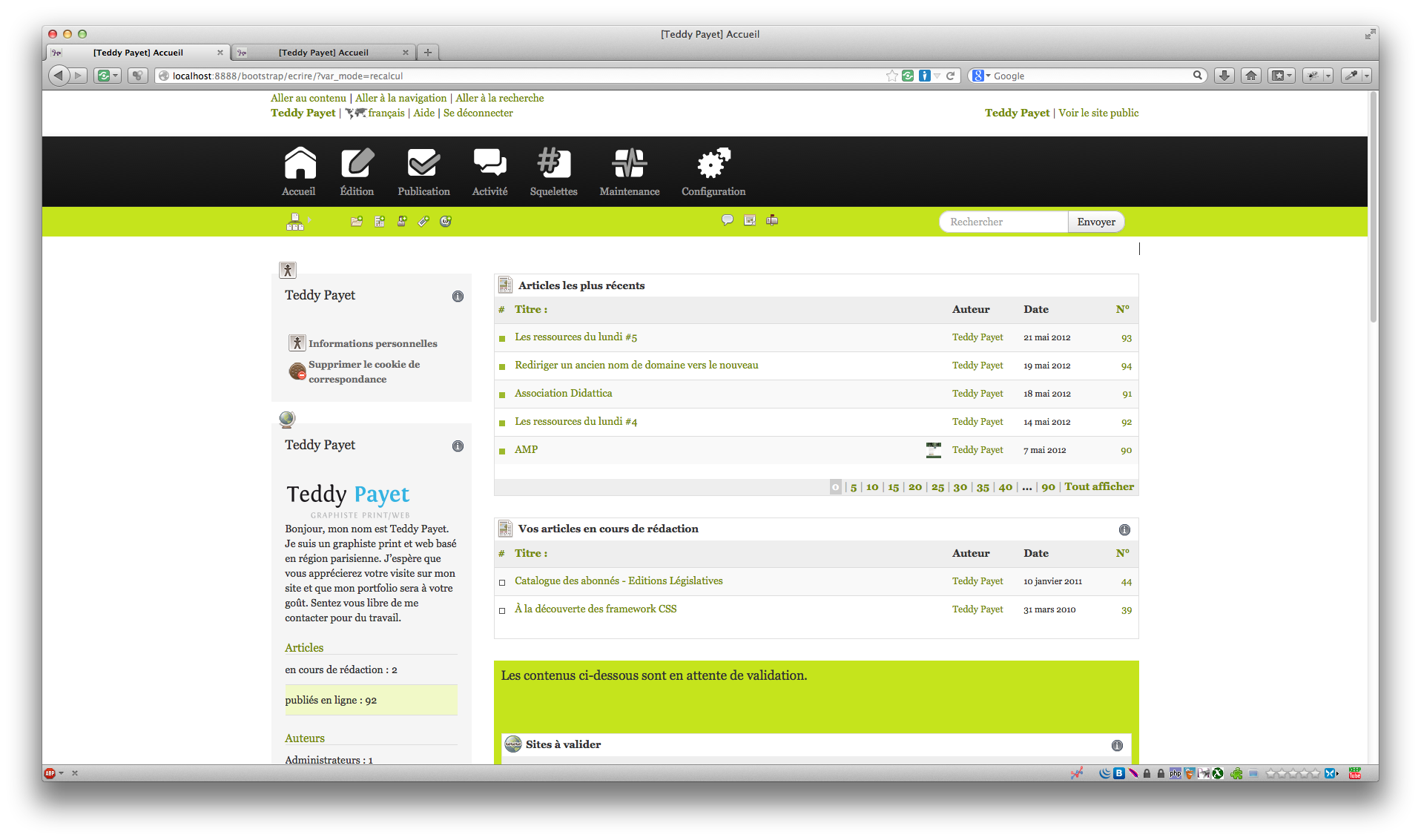 Cette phase n’est pas une refonte ergonomique de l’espace privé mais un portage de l’espace privé sur Bootstrap. Le but étant de retrouver les fonctionnalités de l’ancienne interface et si possible, d’apporter les réflexions et avantages de Bootstrap.