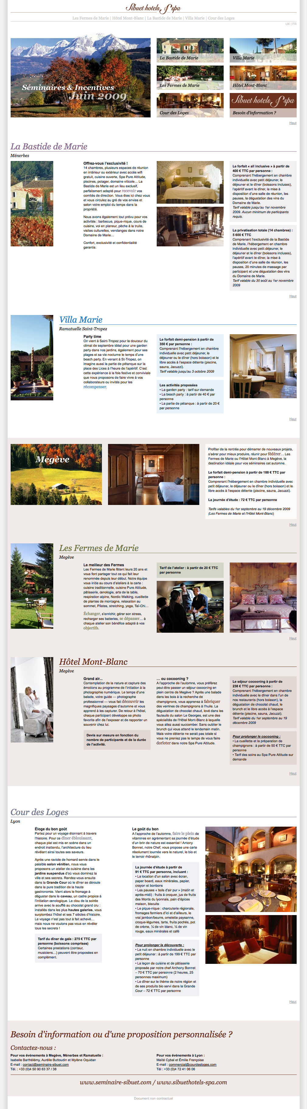 Sibuet Hotels & Spa - Séminaires et Incentives 2009